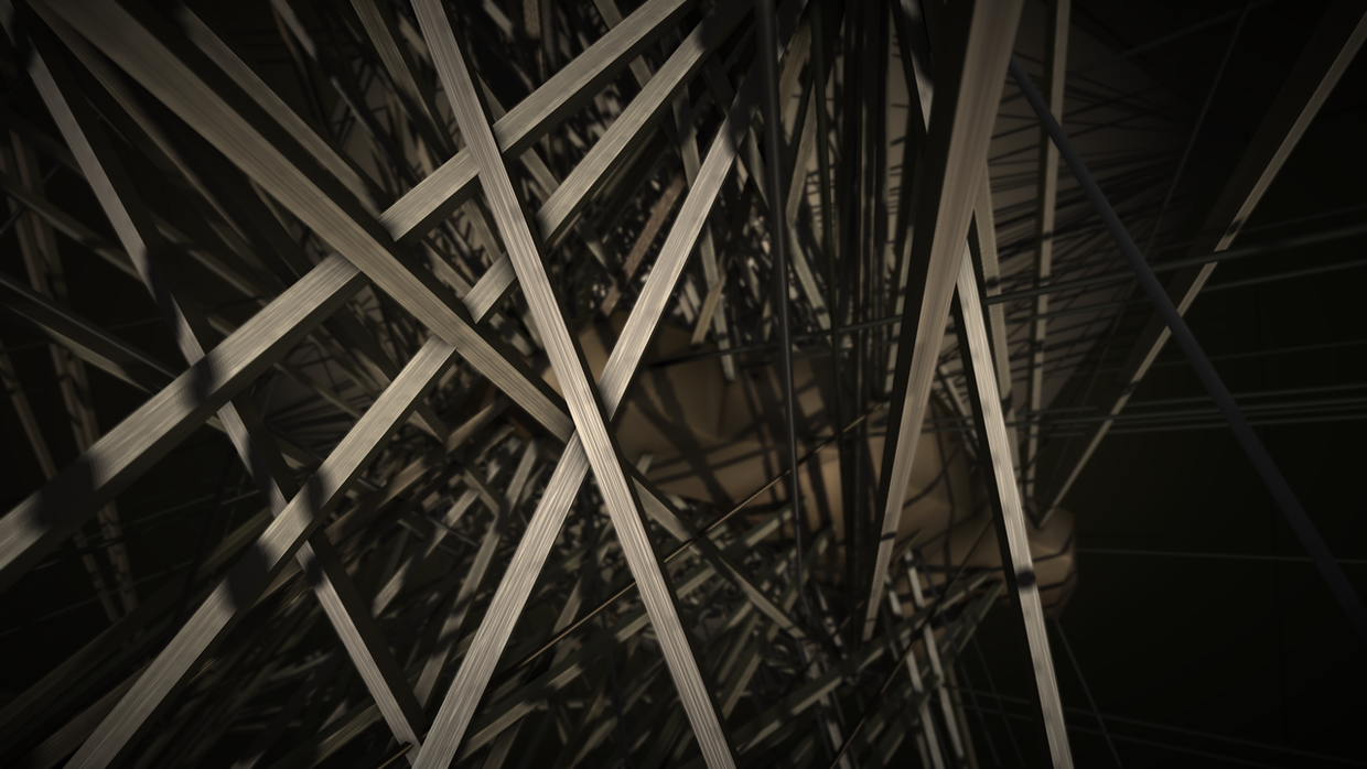 We interact in realtime controlling several parameters of the visuals and directing the camera movements. We emphasized the strong dynamic and timbric contrast between the two musical compositions by finding different kinetic and material properties for the two visual counterparts. The monolithic structure of the pieces lends itself to an architectural / sculptural representation, in which the elements are animated and recombined changing the general order but still maintaining the global identity of the work.