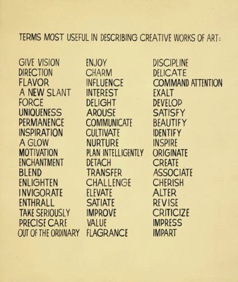 I Will Not Make Any More Boring Art (1971) donde aparece el mismo Baldessari escribiendo esta frase una y otra vez, a modo de castigo (Nunca más haré arte aburrido)