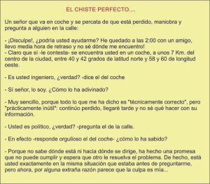 Hay un chiste circulando por Facebook, que aunque trata de políticos, me ha hecho reflexionar por analogía, sobre las relaciones que se producen en las aulas, entre los docentes y los alumnos…