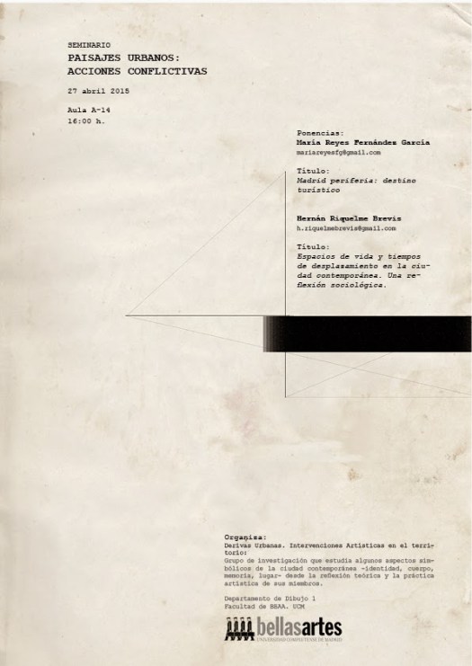 Seminario promovido por el Grupo de Investigación Derivas Urbanas: Intervenciones artísticas en el territorio, en colaboración con la Facultad de Bellas Artes y la Universidad Complutense de Madrid.