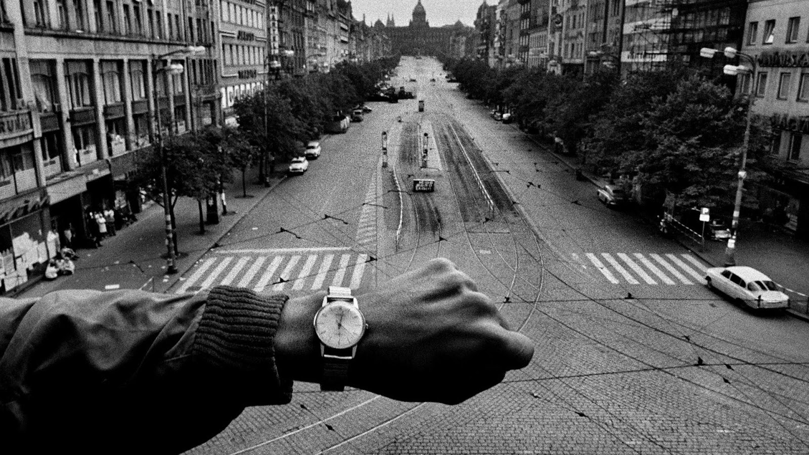 Esta es la fotografía de Josef Koudelka a la que me refería, el momento justo de la invasión soviética en Praga. Un reloj marca un tiempo que ya ha dejado de existir con el mismo clik de la propia instantánea.