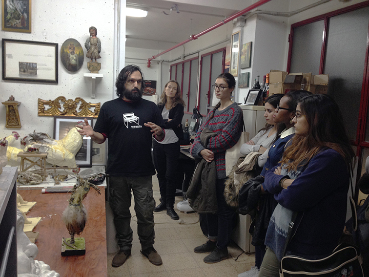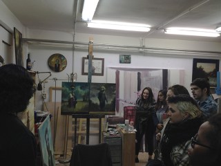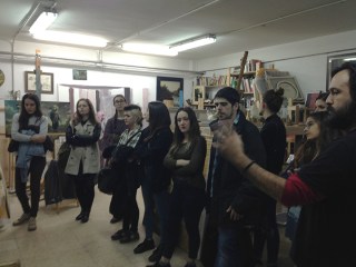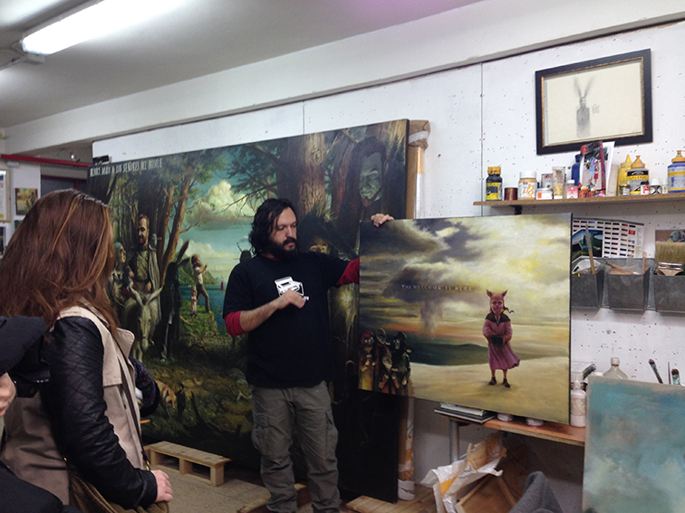 Toda visita al estudio de un artista empieza como una pieza musical, un rumor de voces, los músicos que se van sentando, el ruido de los instrumentos al colocarse, sillas, toses y de repente un silencio ante la aparición del director.