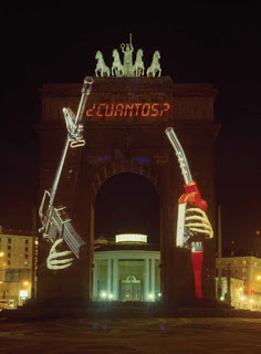 Krzysztof Wodiczko, Arco de la Victoria Projection Madrid, Spain 1991 detalle