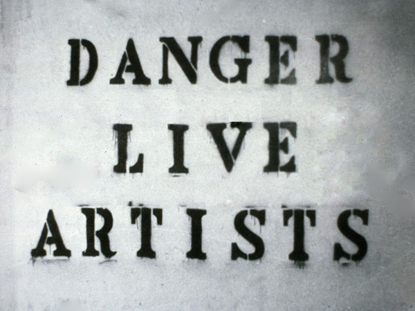 Fekner paints Danger Live Artists directly on the the interior walls as part of John Crash Matos invitational show Graffiti Art Success For America in the fall of 1980.