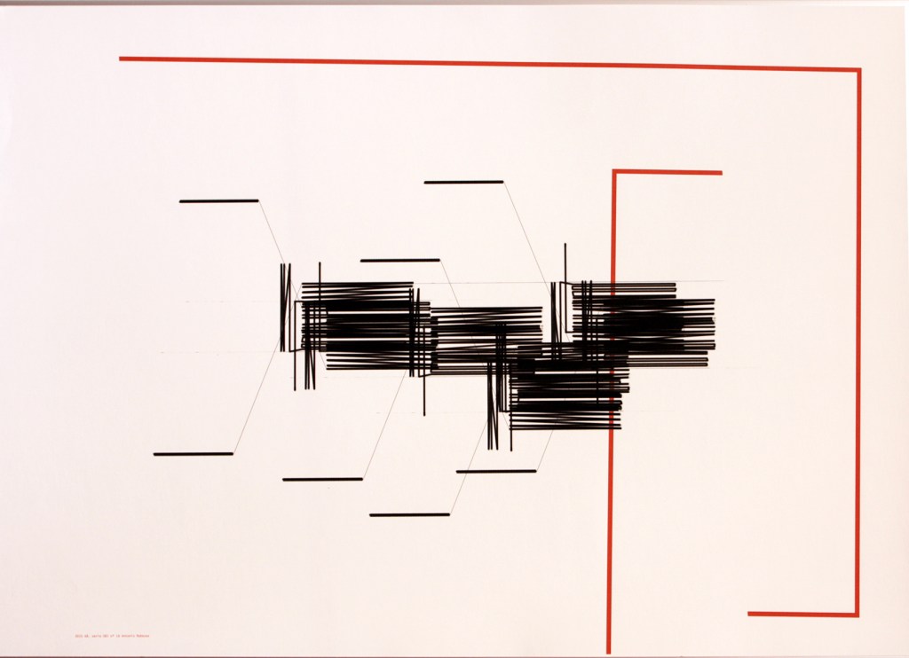 Intento comprender, para ignorar, más si cabe. Lo hago para escapar, pero no puedo dejar de tender hilos sobre el camino. El deseo es un esfuerzo atento, y no hay esfuerzo estéril. Presento aquí, geometrías abstractas del deseo de construir. Deseo de luz, pero producir más luz necesita de eclipses de tinta sobre las hojas blancas.